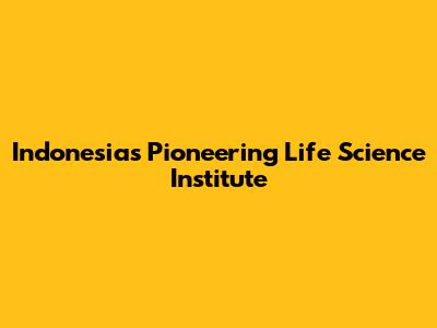 Indonesia's Pioneering Life Science Institute